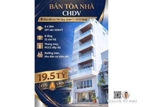 BÁN TOÀ CHDV KHU TÂN QUY Q7 – DT 10X20M – HĐT 200TR/TH – 42 TỶ